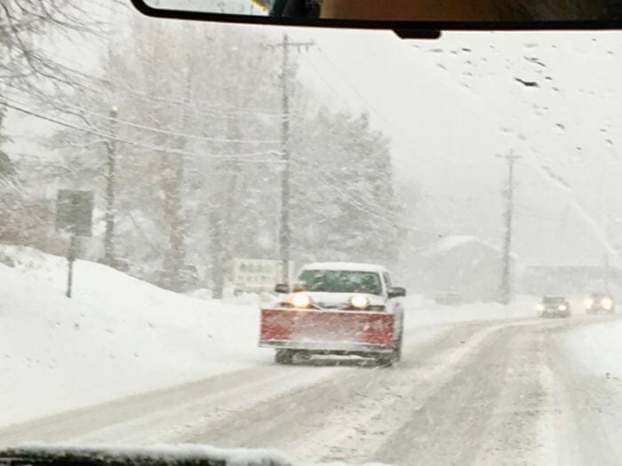 Lots of the pick-up trucks come equipped with their very own snow plow! Smart! Taking no chances!