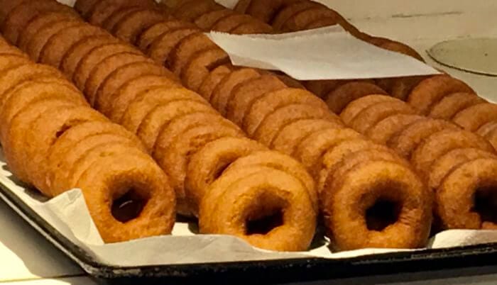 Out, munching do-nuts, drinking cups of steaming hot cider, we slip into gallery, then back in the car . . .