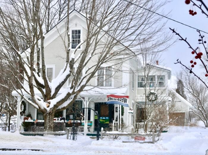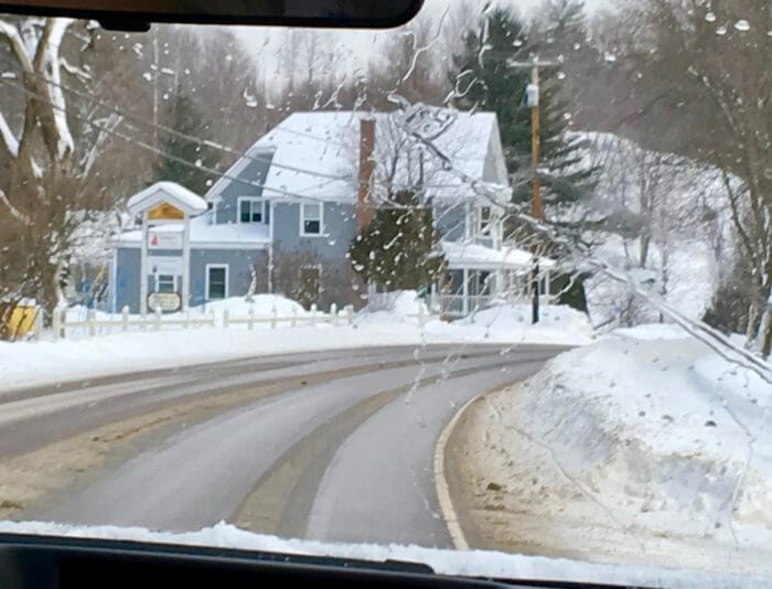 Then across the street we went through softly drifting snow to the “almost world famous” Warren Store, built in 1839 as a stagecoach stop, which, from all the action, people going in and out, seems like it’s probably the community center, both for locals and for our kind, the not-so-local, but-still-very-appreciative, too.