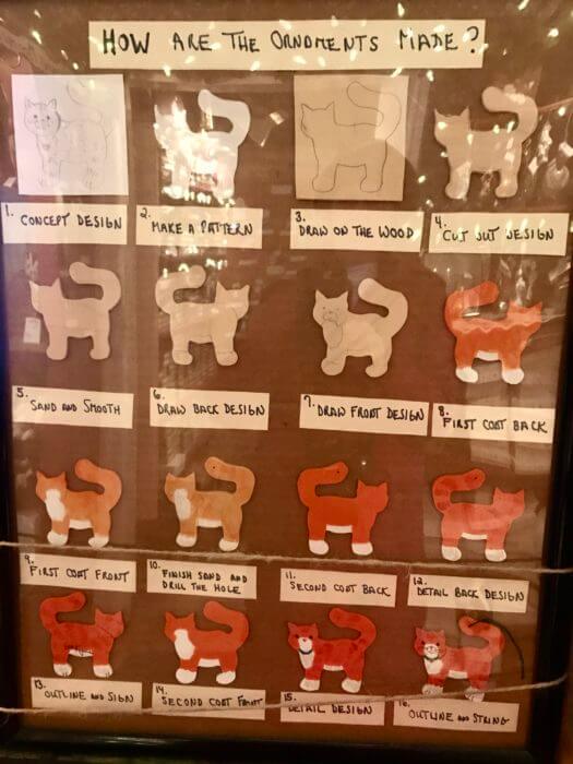 He is waiting for you to try it. He had me so riveted on him, I forgot to take a picture of Gaelic making her wooden ornaments . . . but Lowely took this picture of a wall display . . .