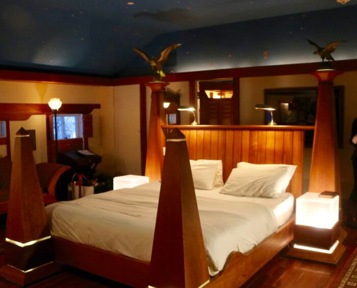 And this frightening thing with wild eagles on the posts, was our very comfortable bed, with ice cube light tables on both sides! You just never know!