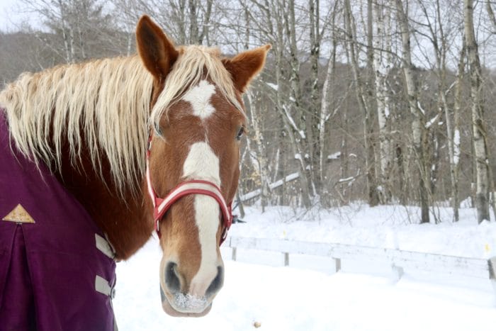 I am so happy! A sleigh ride is my most favorite dream and you made it come true! Thank you a thousand times! The closest experience I’ve had was a wagon ride pulled by Jim &Dan ! 2 beauty Clydesdales at Christmas! We all sang carols in my neighborhood and it even snowed ! Lightly , this is Atlanta , Ga. Jim and Dan both love peppermints and carrots! Wish I had thought of apples. I loved your photos too! I am from the north east ! Do miss the wonderful barns in Pa. I thank you so very much! Thank you for sharing your lovely talent! Beth