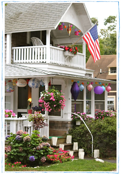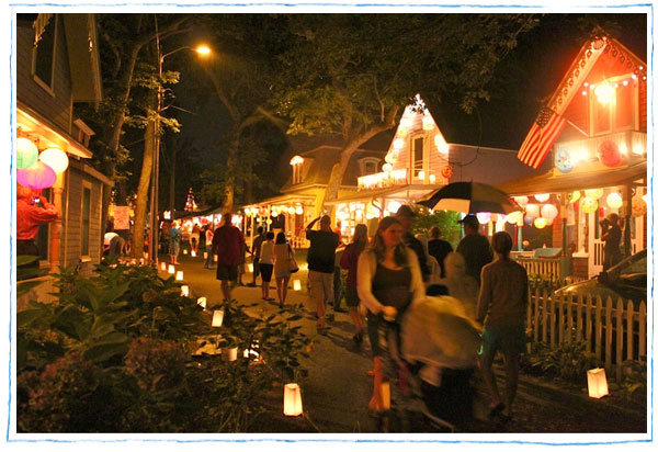Grand Illumination night happens every August in Oak Bluffs (since 1868); the little gingerbread cottages are decorated with Chinese lanterns . . .