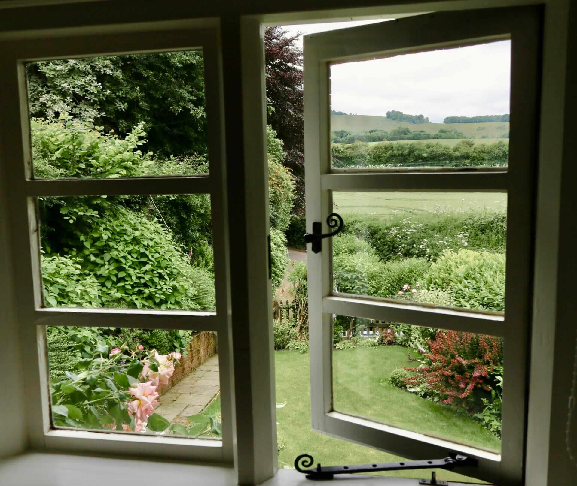 I took this photo through the living room window out to the picket fence garden, you can see the reflection of the lamp on the mantle behind me. Isn’t that just crazy?