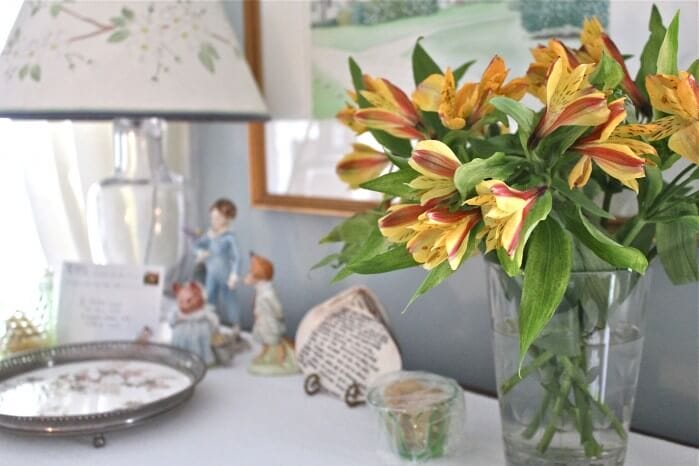 A bouquet of alstroemeria is cheering the guest room; for our friends Rachel and Paul who came all the way from England to have Thanksgiving with us. ♥