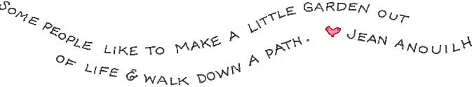 I loved the quote you began your post with by Jean Anouilh…”Some people like to make a little garden out of life & walk down a path”.