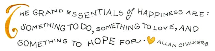 Oh Susan…I just sent this quote about the Grand Essentials of Happiness to my dear friend today…so lovely and simple, yet so profound. I know this might take the fun out of your real-life binders but I wanted to tell you about Pinterest (www.Pinterest.com) if you don’t know about it yet. Basically, it is a website that allows you to create “virtual binders” (they call them Boards) for whatever your heart desires. You “pin” whatever captures your fancy to a board that is labeled however you choose and away you go…searching the internet and organizing it into these Boards. It’s quite addictive and fun! Plus, it’s a fantastic way to dream. I love your story of your mom and grandmother…beautiful. Thanks so much for your inspiration and your sunshine. You are simply wonderful. <3 ~Beth