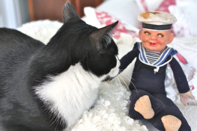 I love the pictures you took of Jack and the sailor doll! You did a great job of speaking for Jack, I’m sure those are exactly the words he was thinking. I can’t believe you got his little paw around that doll and then to take a nap with it!!! The two of you are a pair!!! I just love it!
