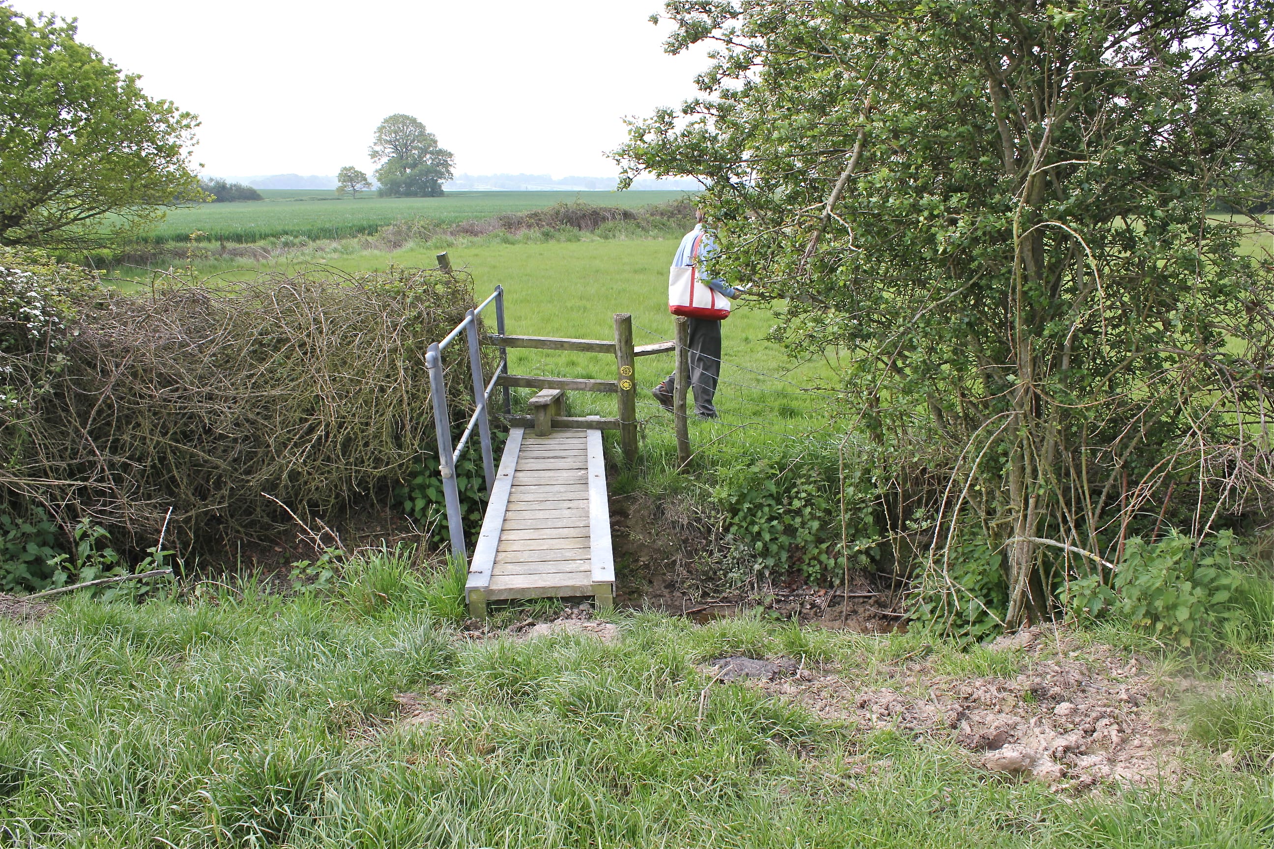 And over this narrow little bridge … some of the bridges had no sides, but most have a wooden or metal rail…some you have to climb over on both sides and some are half this width! It occurs to us that we could bring a picnic out here! Sit in the lovely fragrant grass and watch the lambs play! Have a nap, read a book, listen to the birds. Next time! “Doing nothing” at its very best! As the saying goes: “A picnic is a state of mind and can be made anywhere!”