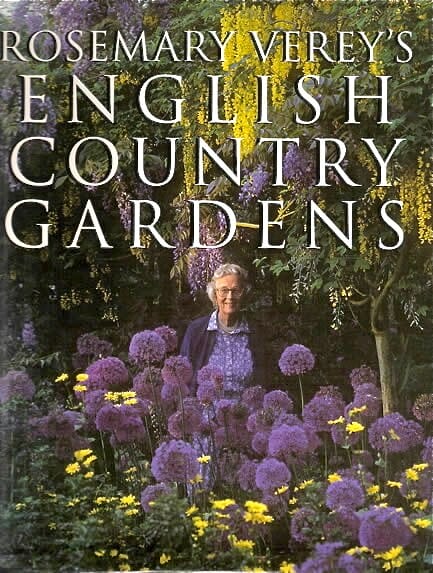 This is Rosemary Verey (a link to a precious video of her speaking about the “Winter Garden” from Barnsley house), and here, on the cover of one of her many books, in probably her most-copied “garden room,” the Laburnum Walk.