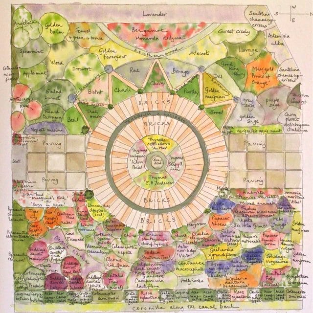 Designs from Rosemary Verey’s Good Planting Plans …. she does this . . .