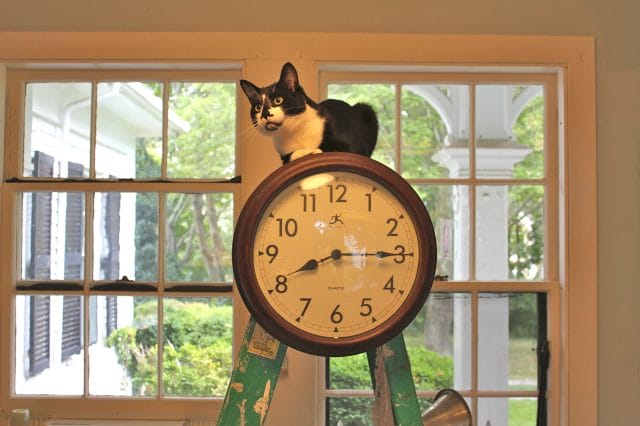 Jack tries to point out to Joe that time is marching on.  Three sides of the room are done, these windows are next, he’s doing them today!  As soon as it’s done I’ll show you!  We can cook in here though, that’s the good news, and it’s coming out beautifully!  I am still happy we are doing it, the part that’s done is so CLEAN and PRETTY!