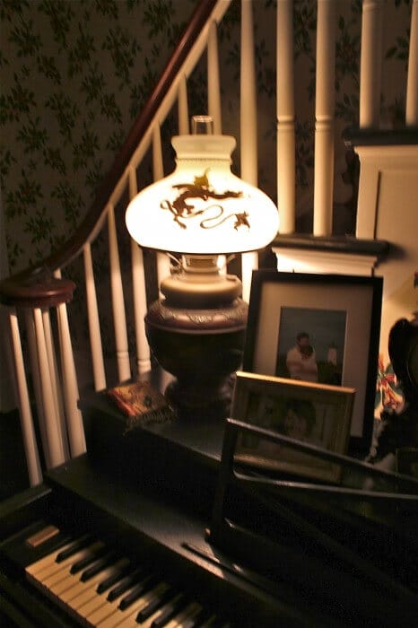 Ohhh, I agree…soft lamplight and candlelight are the gentlest way to welcome a new day. The lamp by my favorite chair is on a timer, so when I come downstairs in the morning there’s a soft, warm light on. A big antique blue canning jar with an electric candle inside, (a gift from my hero, years ago) sits in the corner of the kitchen counter and makes a wonderful night light. Before a party, I like to unscrew bulbs in the powder room overhead fixture, and leave a small lamp and jar candle burning. Only once did I have a complaint…