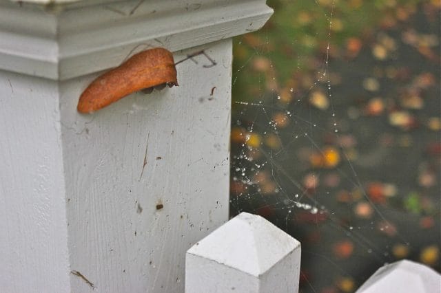 I just love picket fences with spiders and dew weaving their interconnected sparkle-magic . . .