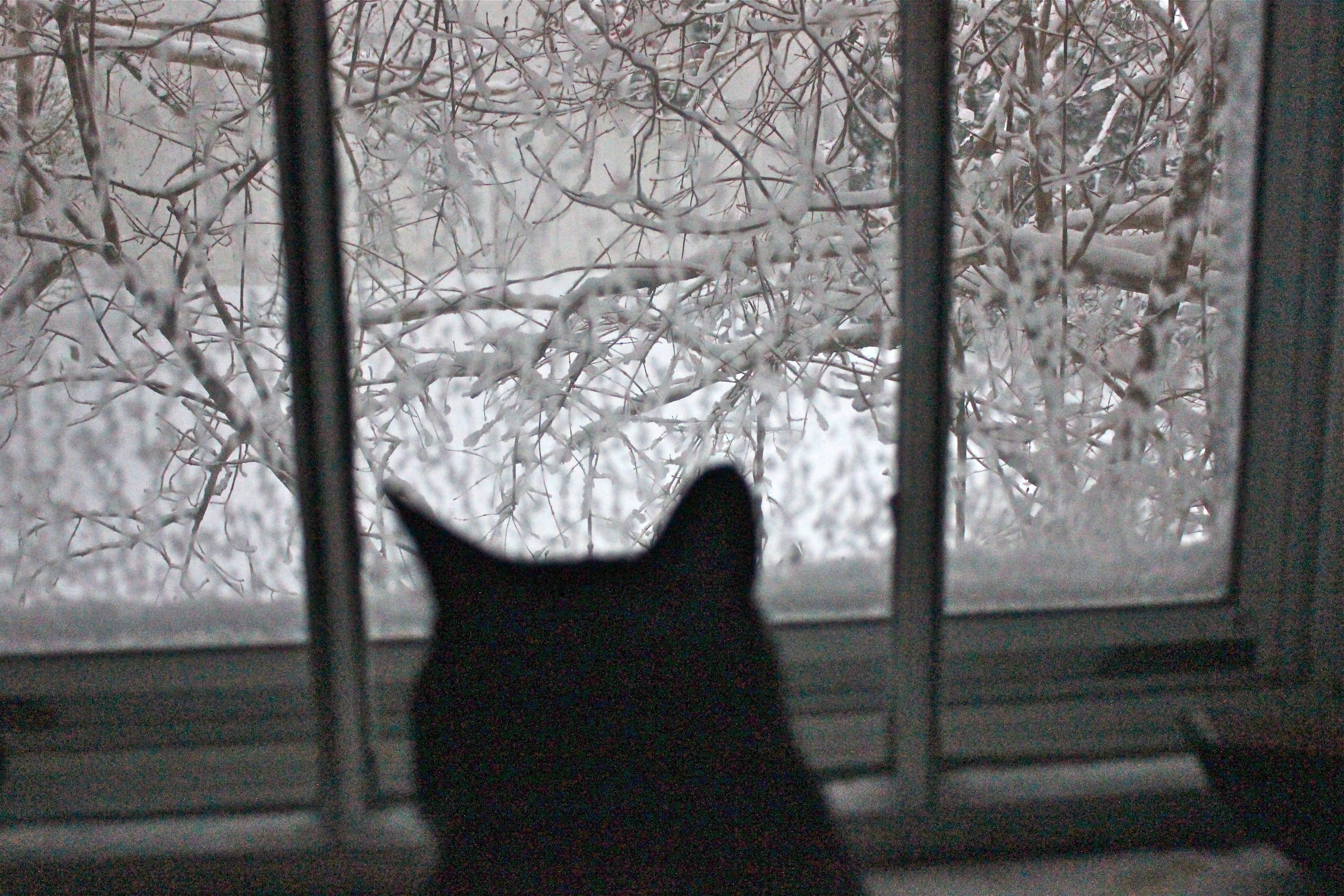 This is Jack’s bird-watching perch in the pantry. Every twig is covered in snow.