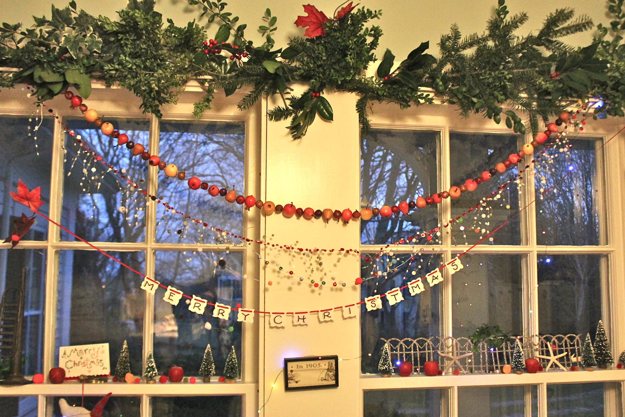 He did the roping over the kitchen windows and I then went garland-mad, which is very easy to do, I just think they are the cutest things and go just about everywhere.