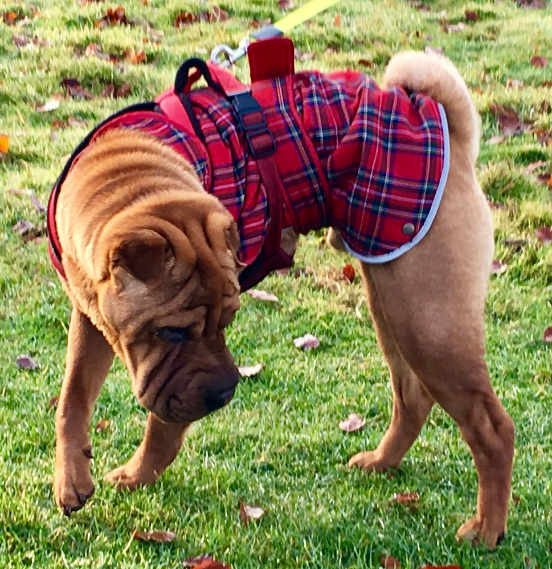 ‘Course, the dogs wore plaid too . . . some were decked out in it . . .