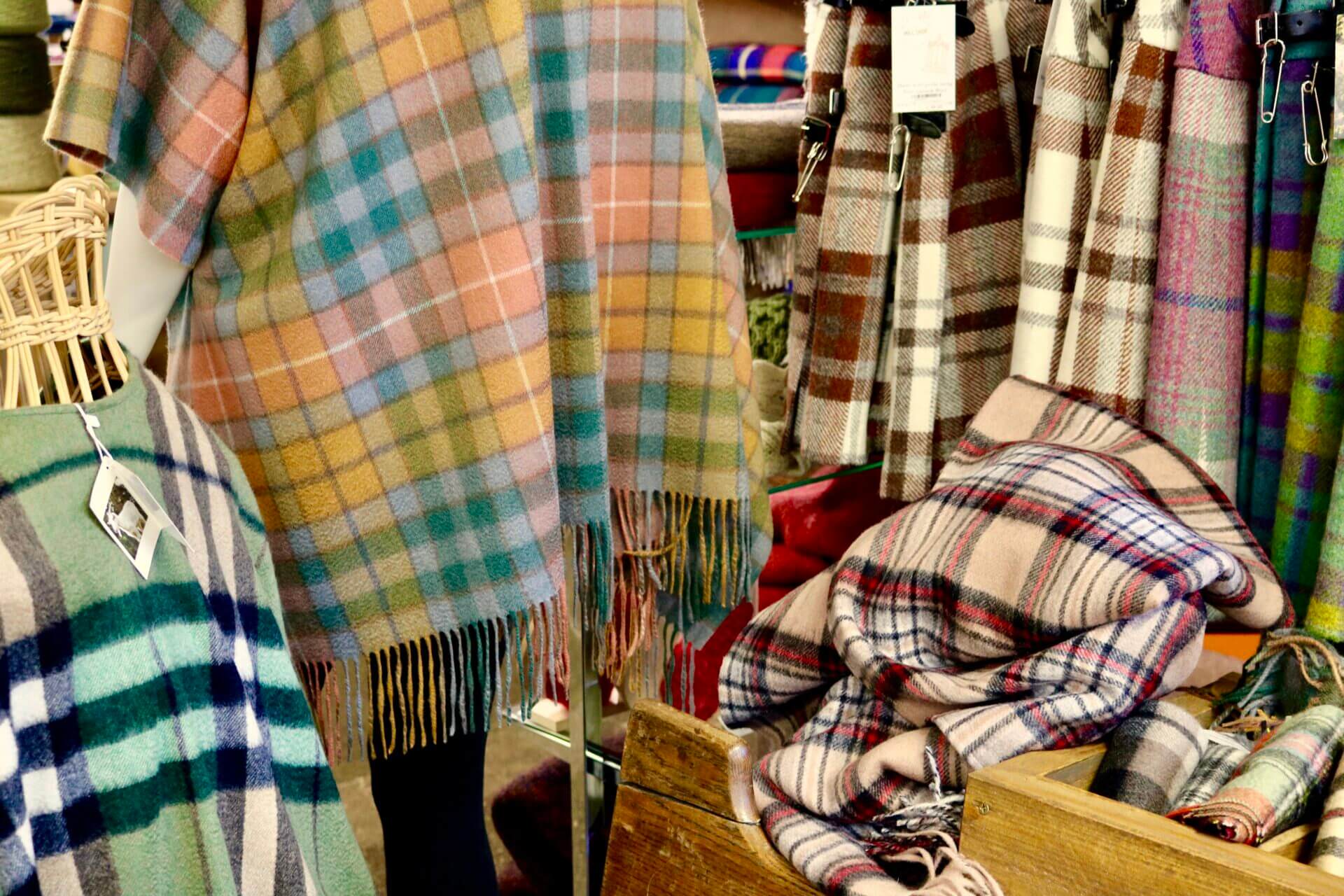 Here’s a photo in a wonderful shop that IS on line. A huge store, filled to overflowing with wool, plaid, cashmere, and tweed and so much more. Coats, jackets, sweaters, skirts, cute shoes too. Called Bruar, House of Scottish Country Clothing. Another place that requires hours of concentrated attention. It’s room after room of this and so much more.