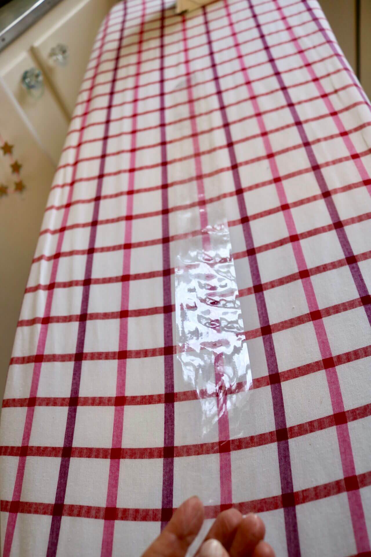 So then it was time to iron. And what is the first thing I have to do? I have to get Jack’s hair off the ironing board, unless I want to iron it into my clothes. The ironing board doubles as his perch at the pantry window to watch the world go by. So I got out my packing tape, laid a big long strip down, and moved it along until all his little hairs were stuck to it!