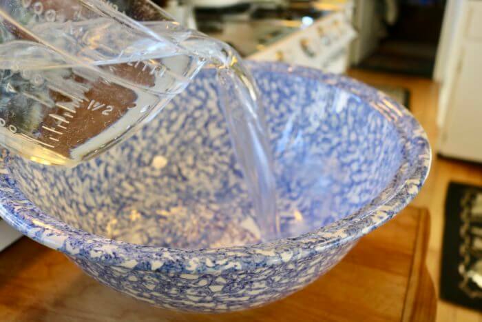 I wanted my jacket to be slightly stiffer than medium, so I mixed 4 c. water with 2 c. starch in a very large bowl. My summer potato salad bowl if you want to know.