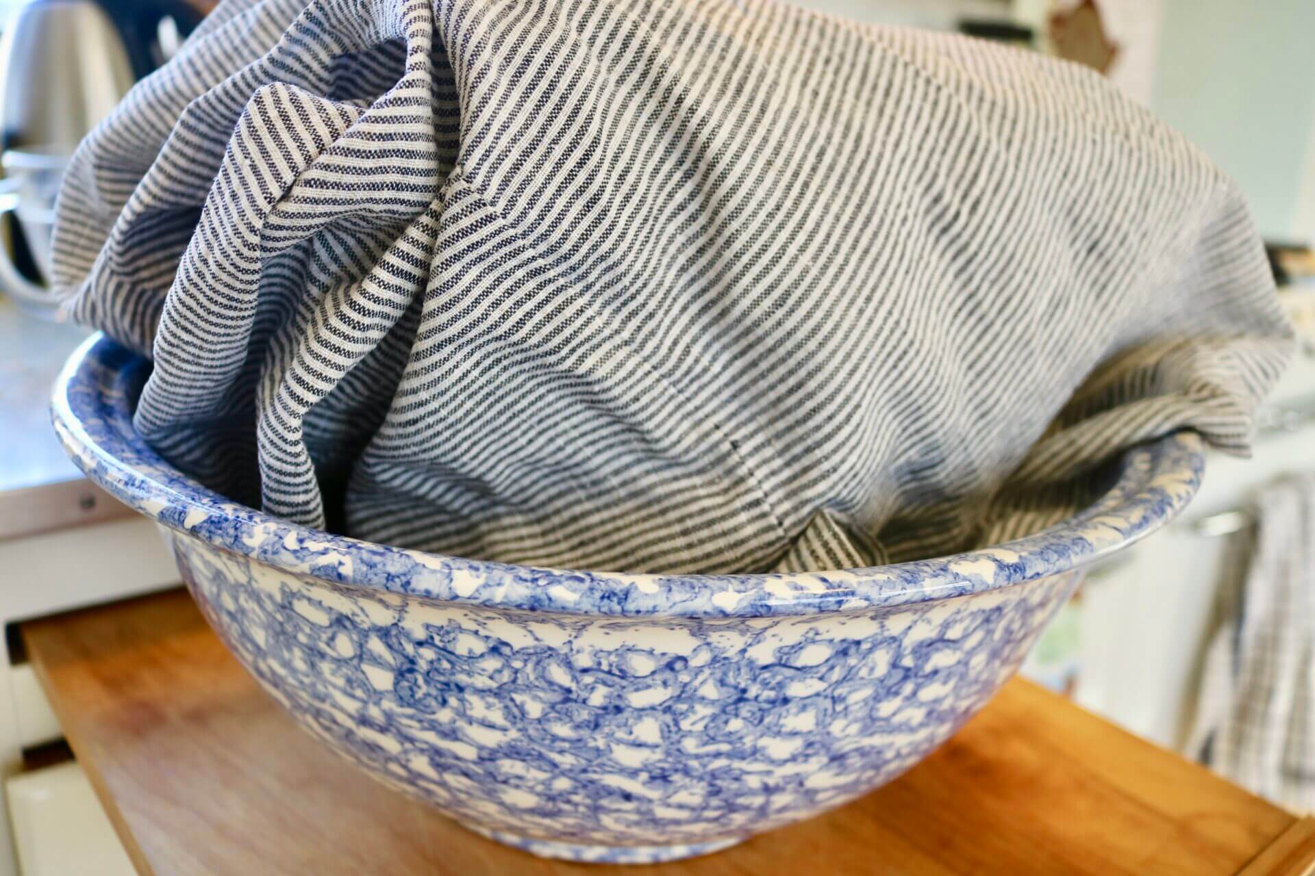 Yesterday, before we left (which was just this morning), I needed to do some ironing for the trip. I’m sure many of us remember our mothers starching clothes before they ironed them ~ rolling them up while damp, putting them in plastic bags and keeping them in the fridge until they were ready to iron. Seems so old-fashioned to us now! My mom did it, there were always bundles of ironing in our fridge, she ironed all my little sister’s puffed-sleeved dresses with starch, and taught me to do it too. And my dad’s shirts ~ we were all very crisp around our house. And it wasn’t spray starch, it was the real thing. Liquid starch, the kind she used, is hard to find, at least where we live . . . our supermarket doesn’t sell it anymore, I had to go to Amazon to get it. Mostly, these days, it’s used for crafts, but I have this linen jacket I was bringing along that is no good without good old-fashioned starch, spray starch just doesn’t do it. In fact, I have a lot of things I use real starch on. There’s actually a really good reason to do it! I’ll show you! (Jack, as you can see, was there for the whole thing! But he was more interested in . . .