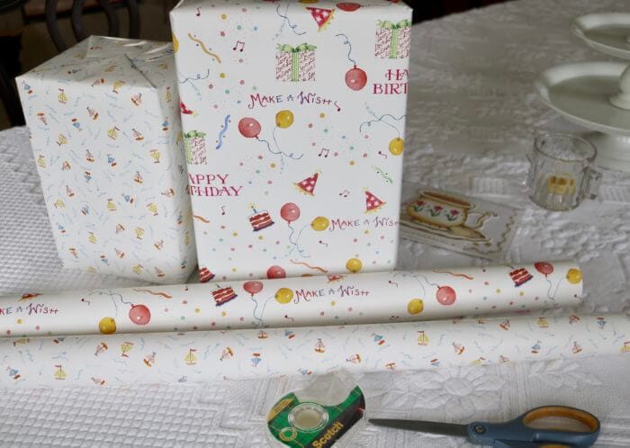 I wrapped birthday presents for my mom, we’re heading to California to celebrate her 87th birthday (on the 27th)! 🎁 She loves it when I wrap her things in my own paper, so I ordered some from Spoonflower, (the people I do the fabric for … they make all the fabric patterns into wrapping paper too!) which I’d never done before, I was interested to see the quality. And was happy because it’s the thick stuff! Very nice.🎈My mom will love it!