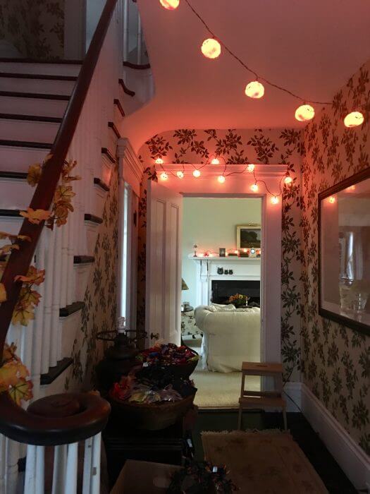Because that’s where the kids come . . . the door to the street is right behind me . . . We don’t want to scare them, we want to delight them. 🎃