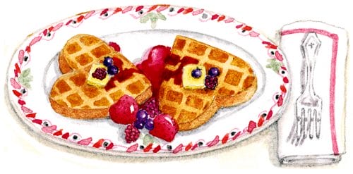 And here’s what else I was doing one cold, late-fall, sunny morning when we got back from our walk ~ making crisp HEART-SHAPED WAFFLES.