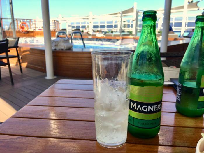 And in our old salt ways, we know one thing we’ve waited for a long time, a first-thing’s-first, sit and drink a luv-lee Magner’s Pear Cider over ice before we make another move. We know there’s bon-voyage champagne in the stateroom, but this is what we really wanted to toast this trip with. Better than we remembered it. Yum yum yum!