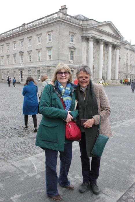 In Dublin we met up with one of my oldest and dearest friends, Elaine (and Joe’s too ~ I met Elaine in California, she moved to the Island and worked with Joe at the Black Dog for a while). She flew in from California to hang around in Ireland with us (and help me celebrate my birthday in Dublin, which is what we proceeded to do) …. here we are at Trinity College. It was her first time in Ireland too, and she’s a Duffy and a Sullivan! 🍀