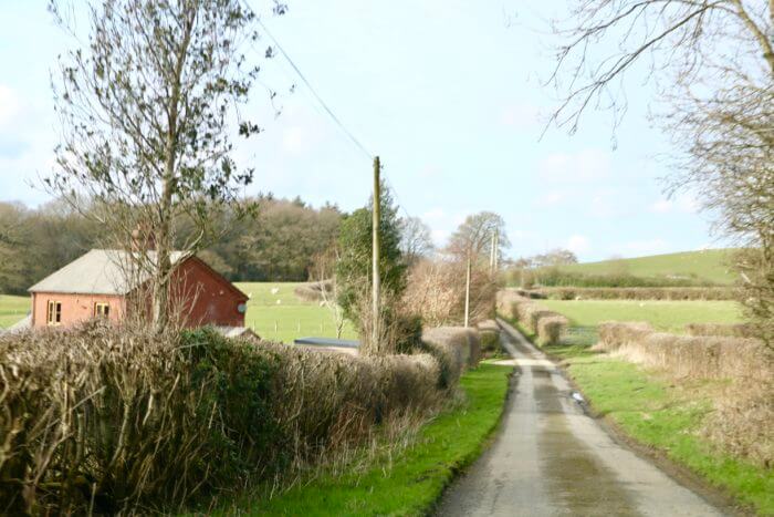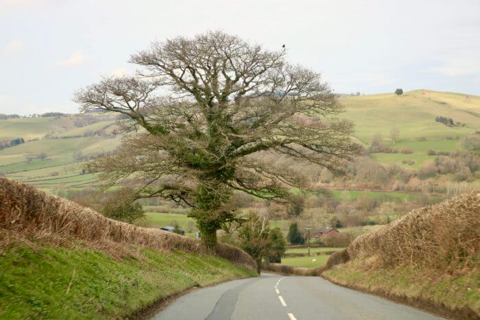 . . . the view is charming and sends your mind to the moon … think of that tree in the summer, what it must look like . . . see the bird at the top, and the lamb at the bottom . . . and those hedgerows? They’re growing on rock walls . . .