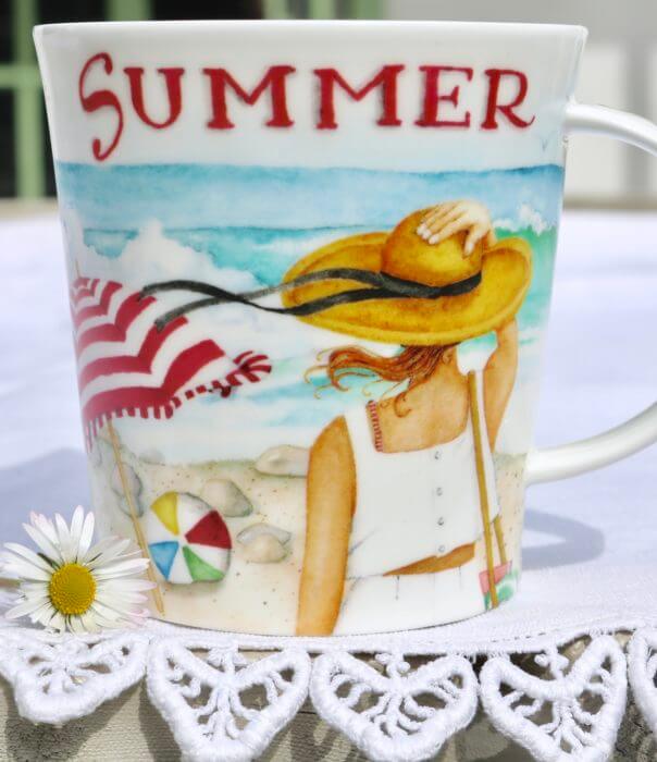 The Summer back, you can see the dog pulling the kite on the beach . . . This is the smaller 11 oz cup (like the other three seasons have been) as opposed to the rest of them which are large 16 oz cups. But they’re both that thin strong bone china we love.