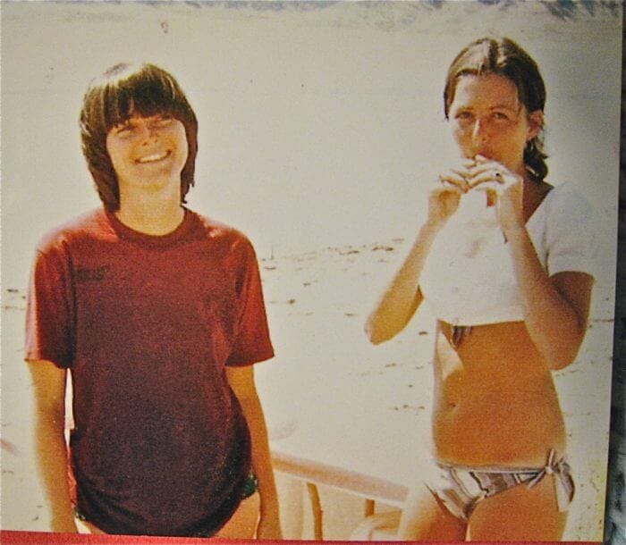 This is Elaine and me in the way-back machine, on a waterski weekend in California. You might remember Elaine from The Fairy Tale Girl … she hired me to work in the record department of Stereo West. (Fired me too! ⚡ But I deserved it so I forgive her!)
