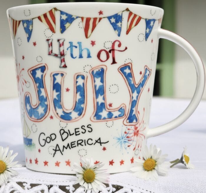 The collection would not have been complete unless we had a God Bless America cup! So here we go! Fireworks, bunting, flags and all!