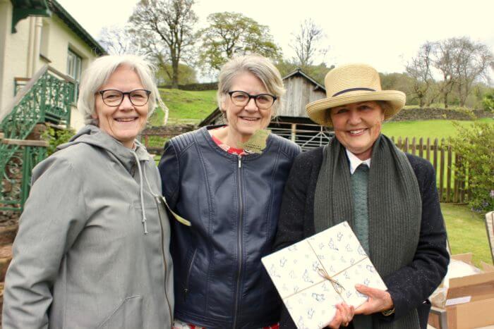 Out onto the narrow lanes of Near Sawrey we went ~ and immediately we ran into Siobhan, looking so cute and springlike. We’d all been afraid it was going to rain that day, and it still looked like it might, we definitely needed our hats, coats, scarves, wool socks and leggings ~ there was a chill wind blowing off the lake ~ But no rain and that’s what really mattered! Because our day had finally come!