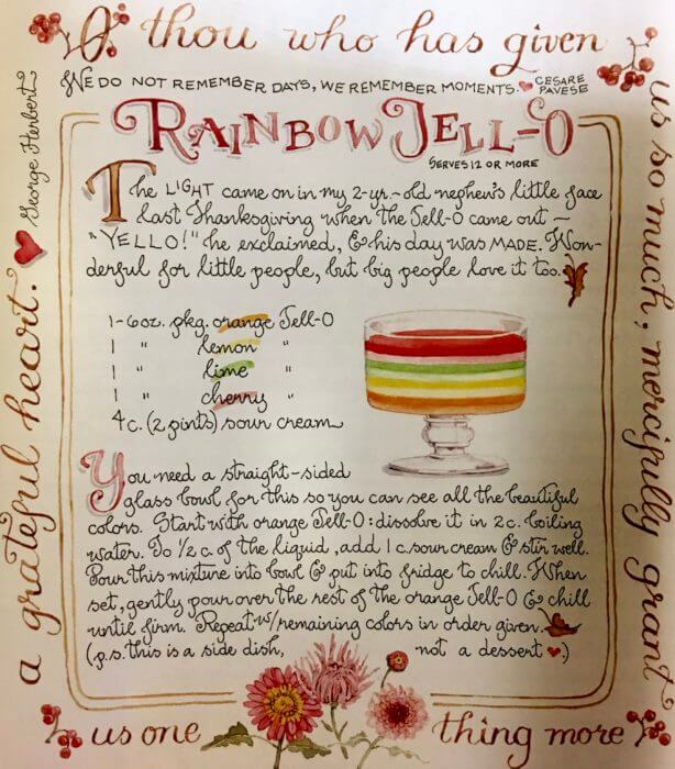I’m not making Rainbow Jell-O this year because we’ll be all adults (and one new baby!) but if you’re having kids at your table, this is a wonderful recipe for them to put in their forever memory banks. It’s kid food, and they know it and I believe, feel grateful for it. But trust me, big kids like it too!