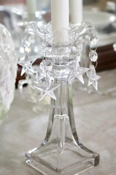Small low vases of flowers are good too, you can see over them! See the candlestick with the star bobeche? I found those bobeche years ago and LOVE them, I bring them out any time I need a starry night!🕯