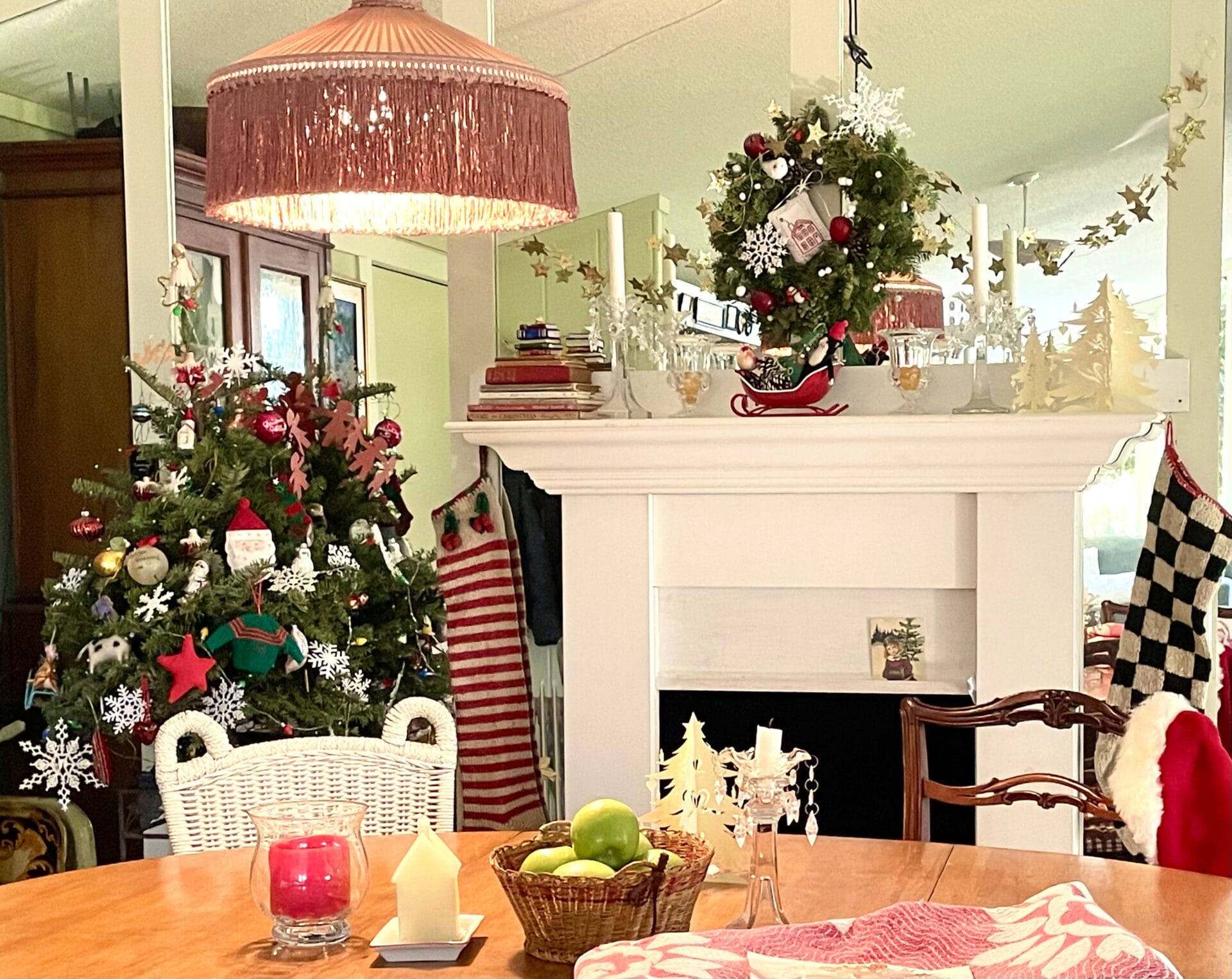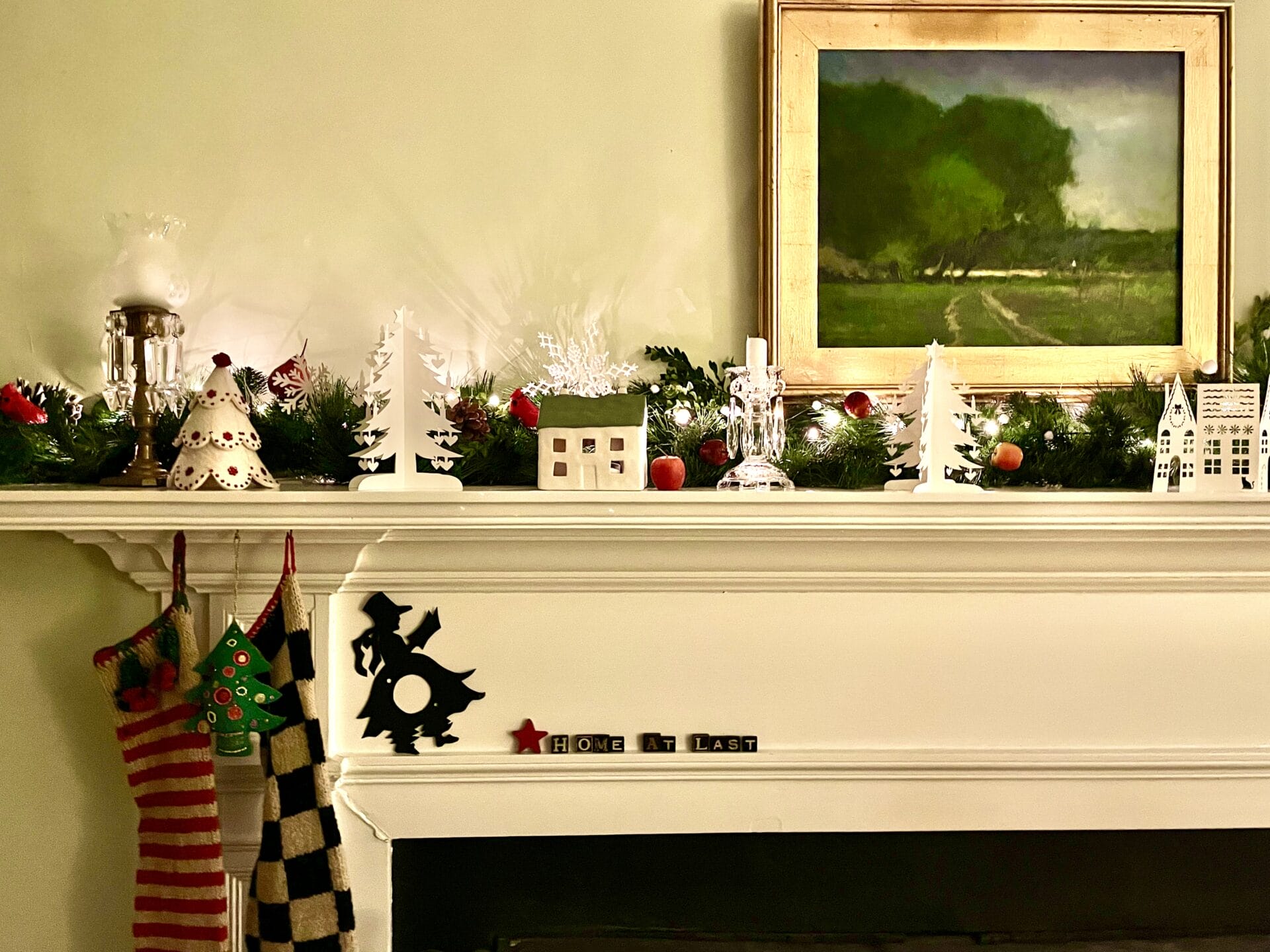 Your mantle made me think back to the “fireplace” my Dad used to make me every Christmas for my bedroom: cardboard boxes glued together with paper you could buy that looked like bricks. On Christmas Eve, I would hang my stocking precariously on the “mantle” & wake up Christmas morning with goodies inside it. I knew Santa had come. What a joy for a kid!! Many more Merry Christmases to you, Joe, and Jack!