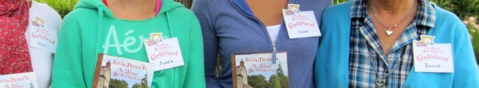 Patches is her store), Kara, and Barbara. ♥ Right this moment, with memories of yesterday swirling in my mind, I’m munching on cookies from my little bag of “Rachel’s Lemon Butter Cookies,” (pg. 139 of A FINE ROMANCE) made by Nancy B (“from Bakersfield,” our blog Girlfriend) … she tied them into little cellophane bags with ribbons and stickers for everyone to take home. Having them with my tea. 6:30 am perfection. Yummy! And that’s how the whole thing was, homemade and filled with heart!