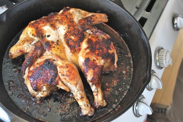 Thanks for your photos along with the recipe. I just happened upon this post this morning, but had been considering trying the brick method after hearing about it. Now that I see what the finished bird looks like (totally beautiful and yummy looking) and how to remove the back bone, it’s totally doable in my mind. Can’t wait to try it! Thanks.