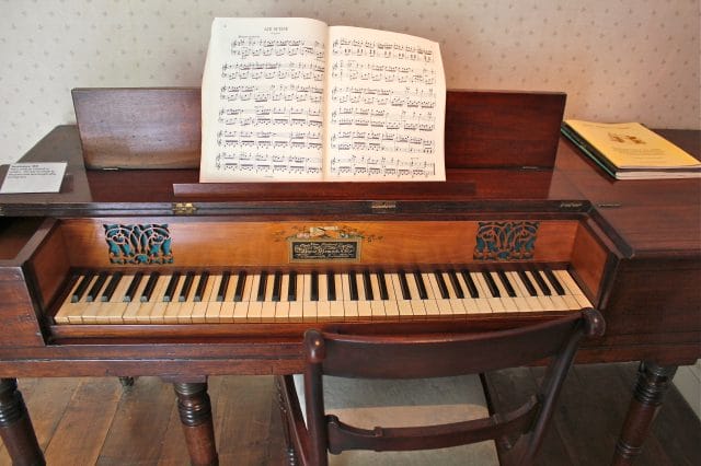 This is not the piano belonging to Jane, but it could have been, and so gorgeous, hand-painted. The music on the piano was Air Suisse. Perfect!