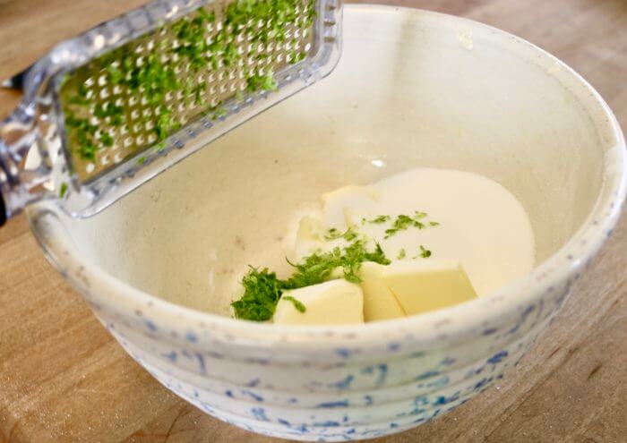 Use your nifty microplane zester (or grater) to take the zest from one lime . . . add it to the bowl along with . . .