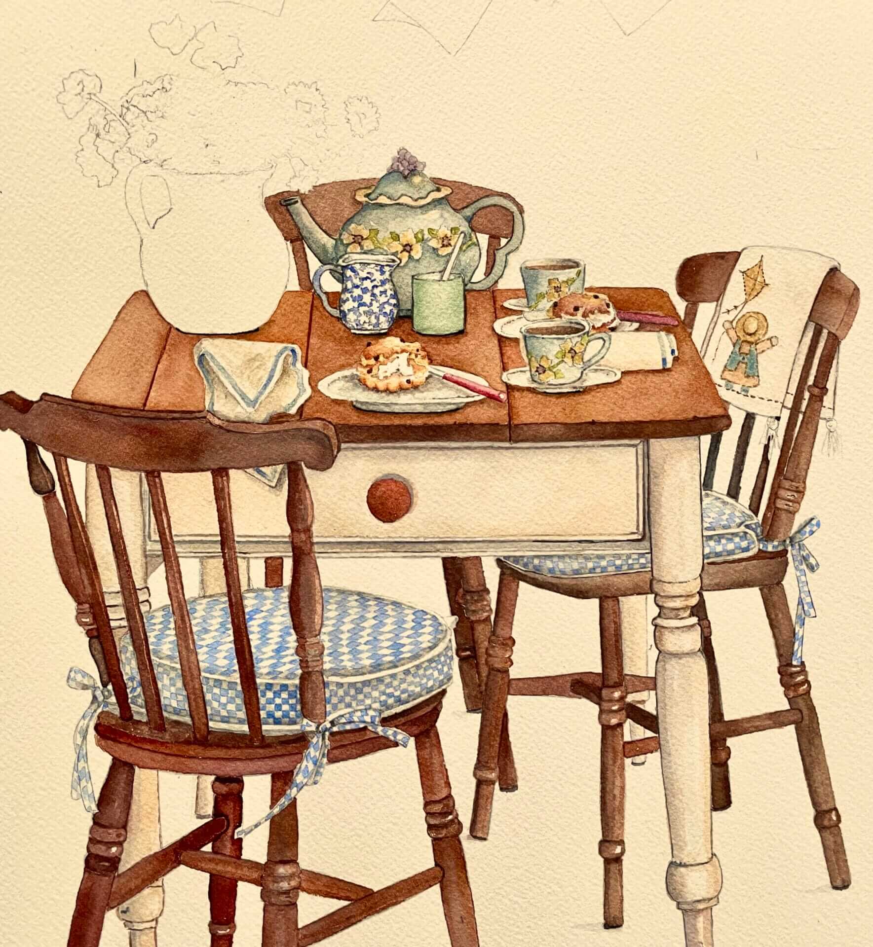 I couldn’t give them hardly anything to drink because their hands were too small to hold it! But one does not give up. One hides the imperfect art in a box for 20 or 30 years until one feels brave enough to show it so that all her friends know that things wanted, must be worked for.💖 I have like three paintings of stick people. It’s like a collection, my stick-people period.