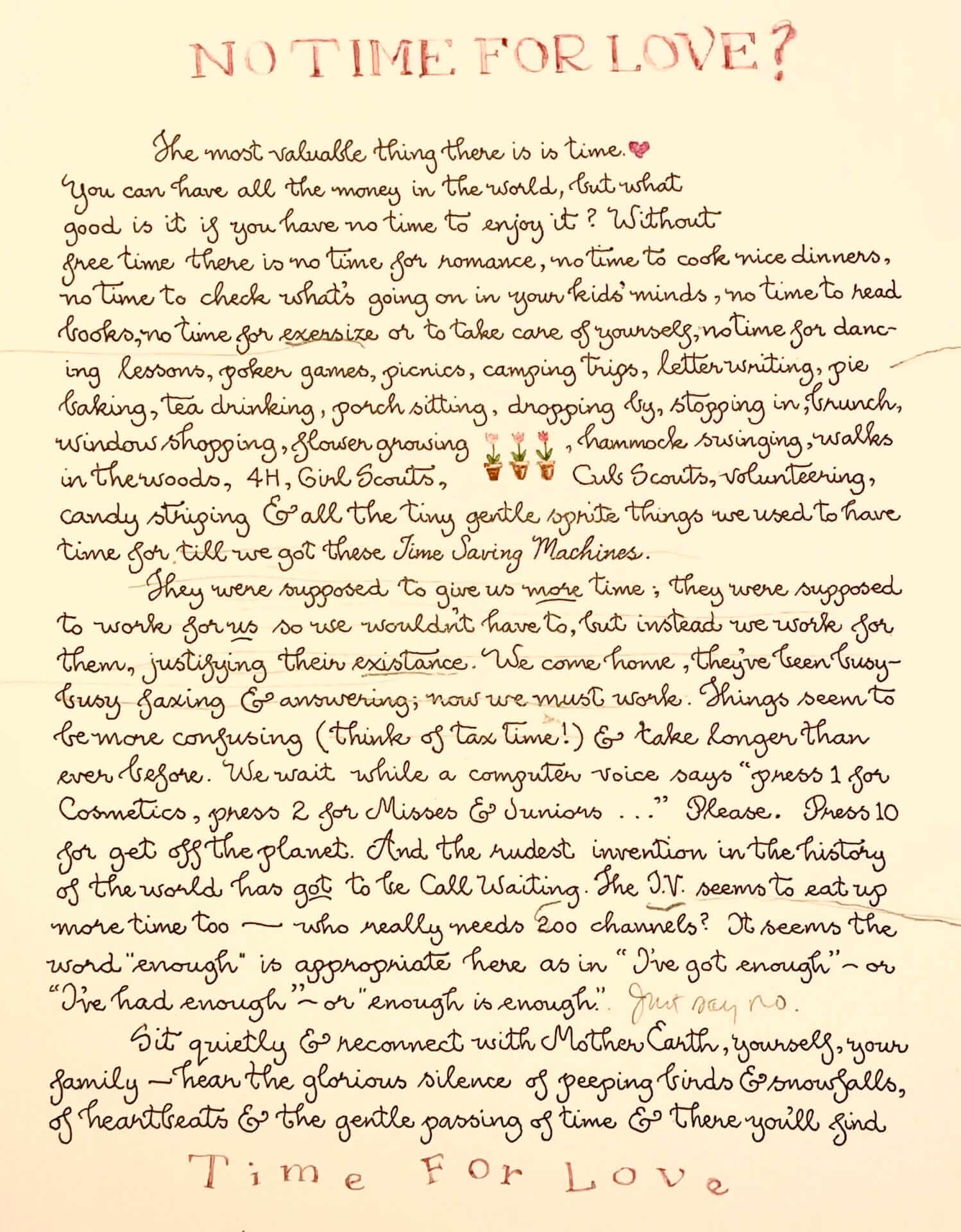 memories, getting organized ~ even when it’s raining, it’s a feast for the senses. No problem if it rains, we have a lot to do ~ mostly going through files, drawers, closets, barn, storage rooms, cleaning, and getting everything into piles . . . speaking of finding things ~ I’ve discovered so many things here, a note from my mom, a hilarious letter from my sister, childhood photos of my grandma, an old set of cookbooks, a collection of old paintbrushes . . . and bits and pieces like this: