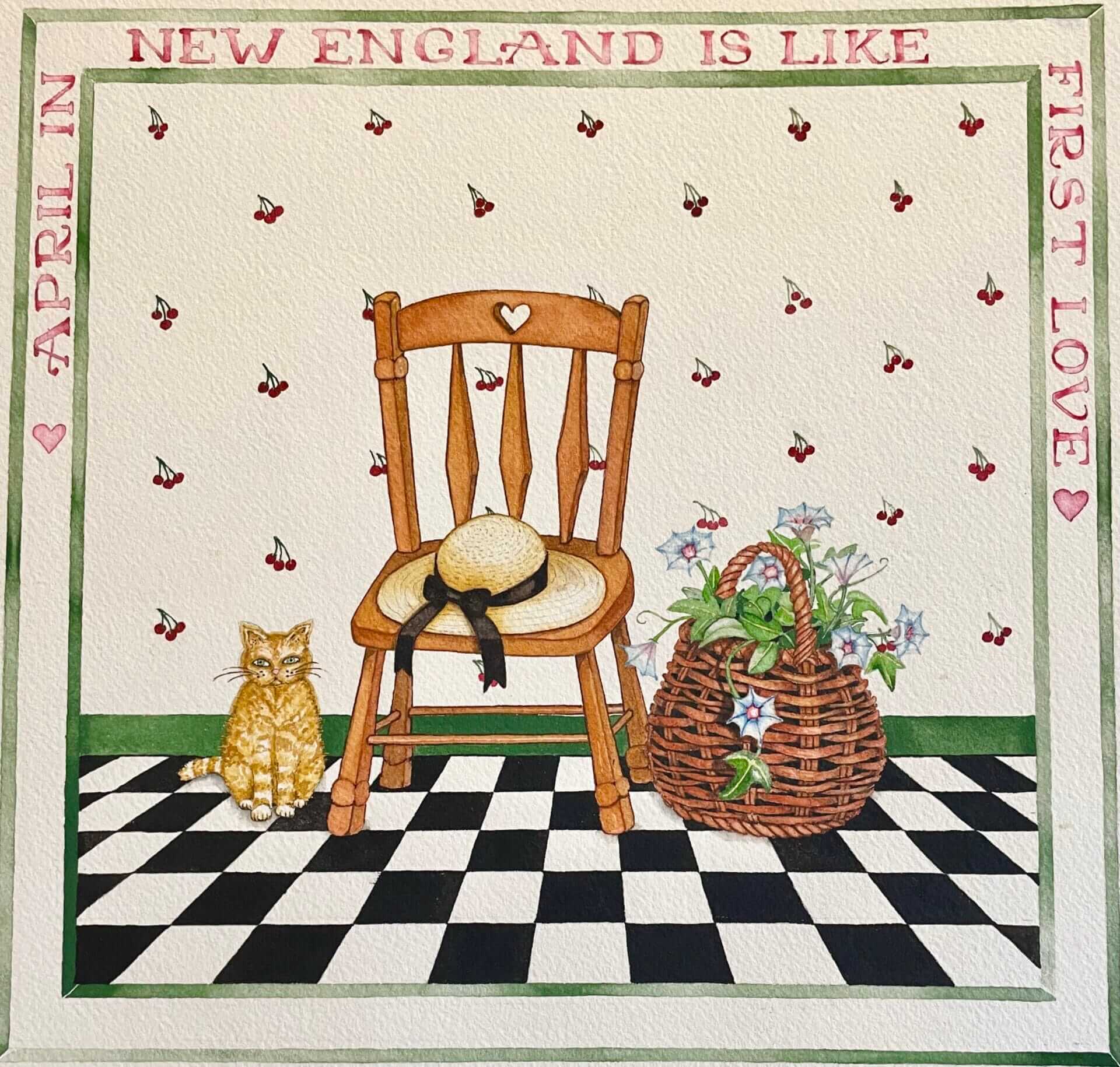 And now, last but not least, it’s time to announce the winner of the lost-and-found original watercolor that celebrates everything we like … home, spring, kitchens, kitties, and love!💘 I’m much
