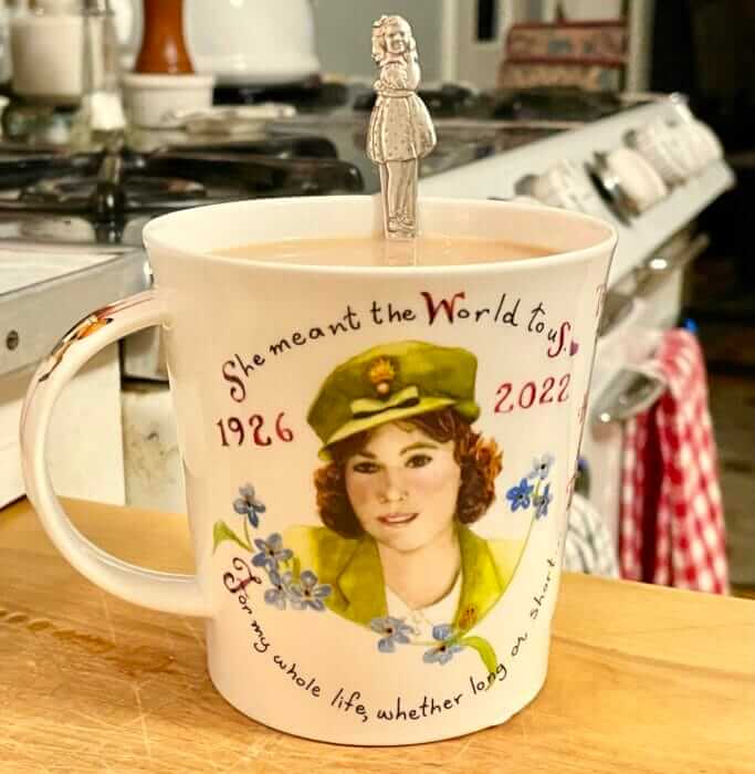 A person the whole world admired for her selfless guidance of her country. And her very familiar human struggle to be better, do better. (This cup has a corgi on the bottom!❤️)