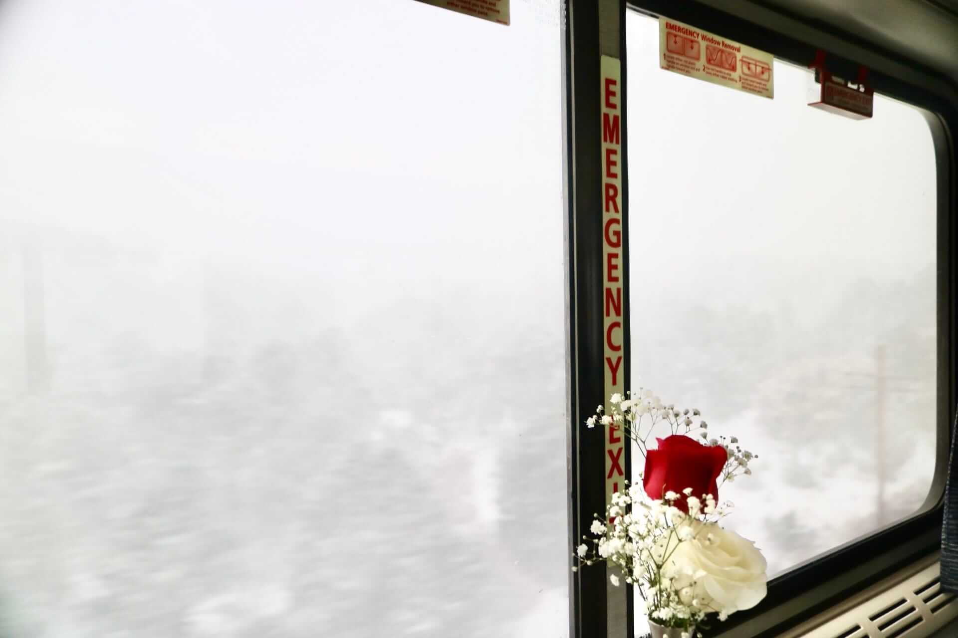 Even from the window in our dining car ~🍷🍷 we drank delicious red wine, while watching a white-out blizzard blow outside the window as we rolled along, listening to the train whistle.❤️ Imagining the conversation between friends across the country: