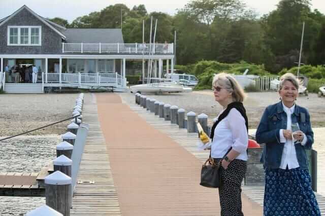Luckily it’s not just me who believes in festival days! Jaime (on the right in sunglasses), next to Margot (with her red hair in a bun), arranged this table at the Katama Kitchen, sent out an email inviting everyone, telling us to bring a credit card and she would bring the wine, and please RSVP . . . and we did and met for this wonderful end of summer get-together dinner the first day of September. No one had to cook, no one had to pay except for ourselves, and tra la! Together at last!