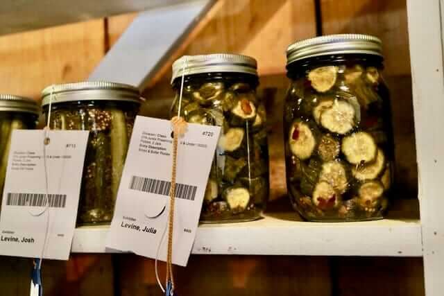 The pies, cakes, biscuits, tea breads, & muffins were all behind glass to keep the bees out of the barn! And it probably also kept them from being nibbled to death!