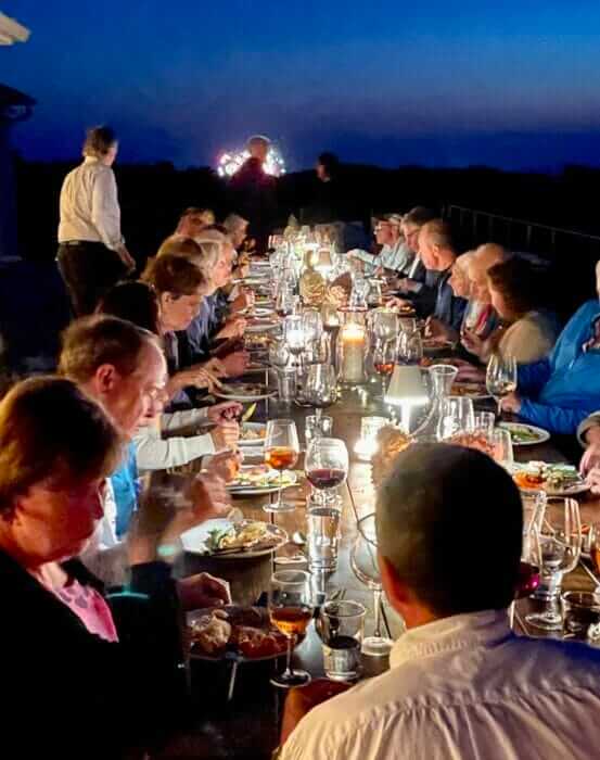 right at the end of the table, in front of the birthday boy, on the horizon, someone all the way down by the shore was sending off fireworks! I told you in my book Vineyard Seasons, all those years ago, there are fairies running ahead on this island making little views of magic you never expect to see!👏